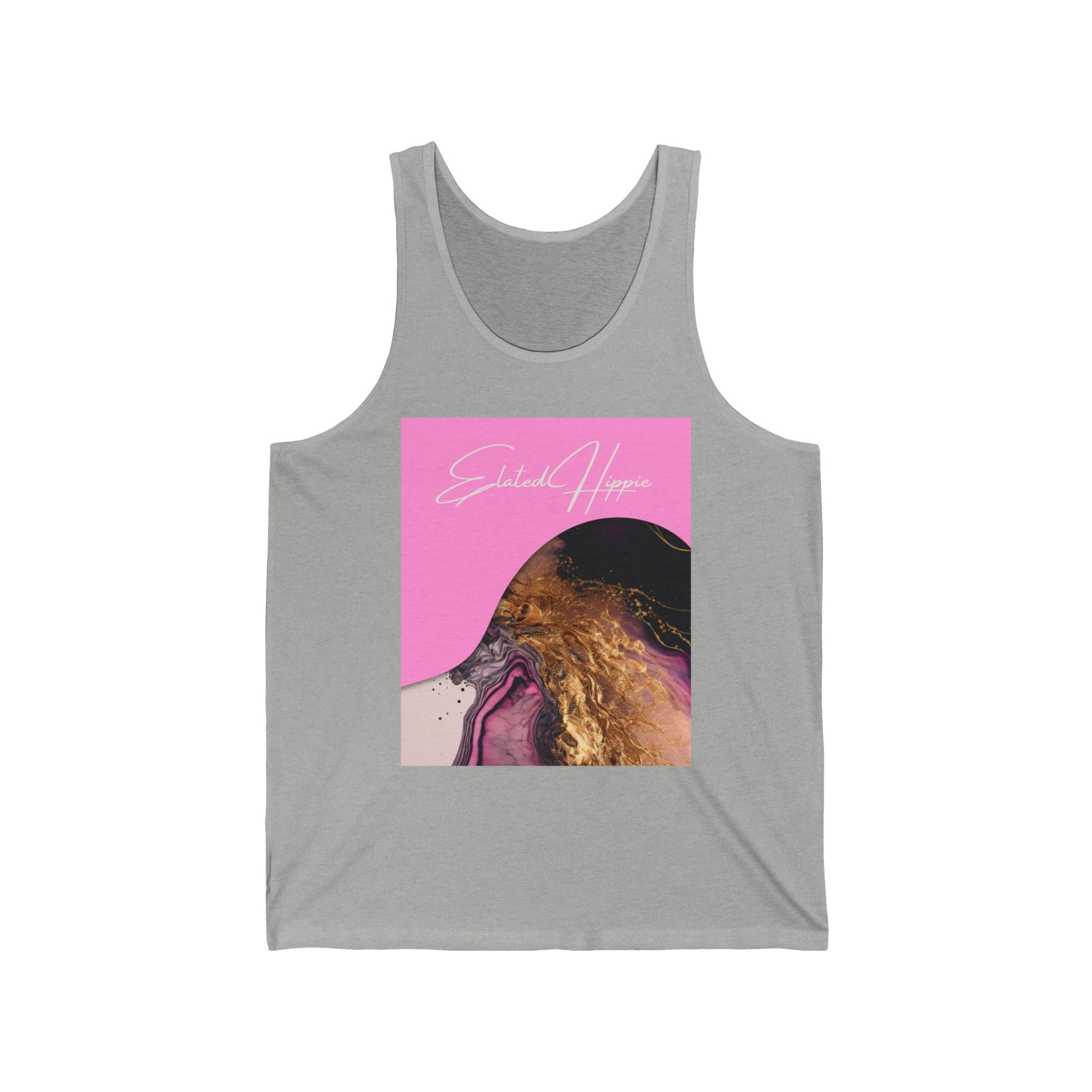 Elated Hippie Retro Pink and Gold Swirl Jersey Tank Top, Pet Lover Gift, Summer Wardrobe Essential, Casual Wear, Funny Animal Tank