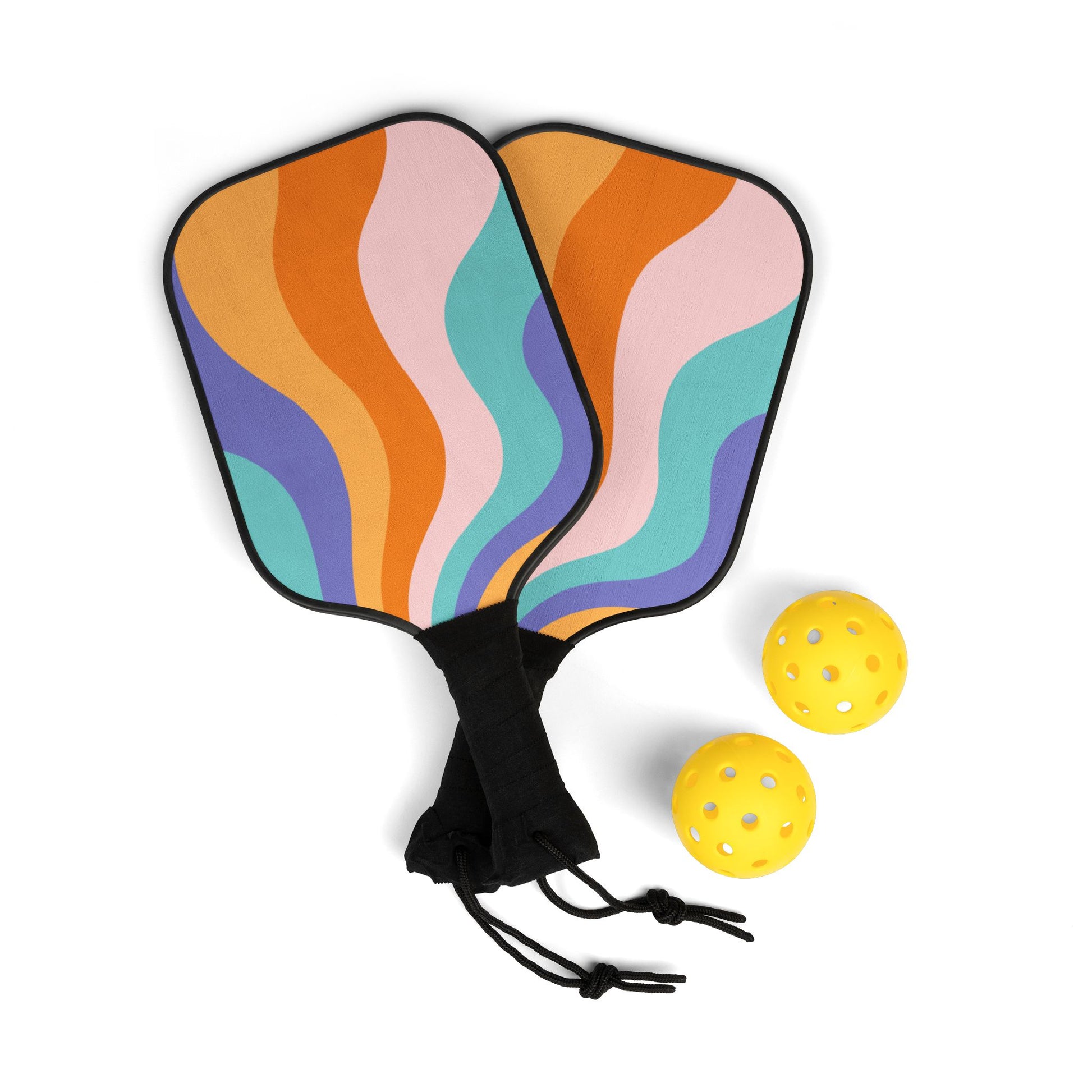 This cute paddle set is perfect for pickleball enthusiasts looking to add some fun to their game. Made from 100% wood with vibrant colors, these paddles come in a convenient carry bag with two plastic balls. The design is duplicated on both sides, adding a playful touch to your gameplay. Ideal for pickleball players looking to stand out on the court.