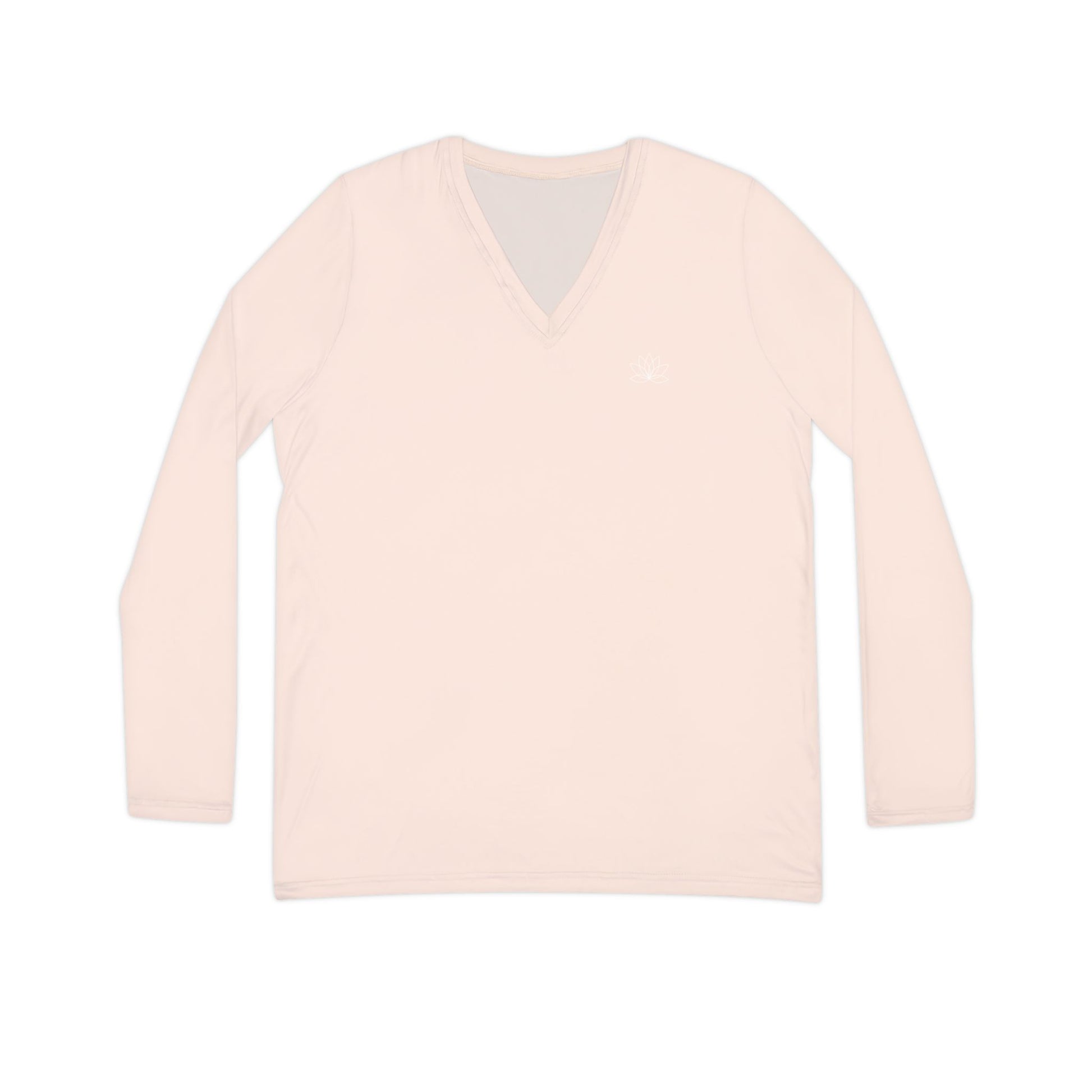 Elated Hippie Peachy Cream Stylish Women's Long Sleeve V-Neck Shirt, Fashionable Casual Top, Perfect for Spring, Summer, and Layering, Gift for Her, Comfy